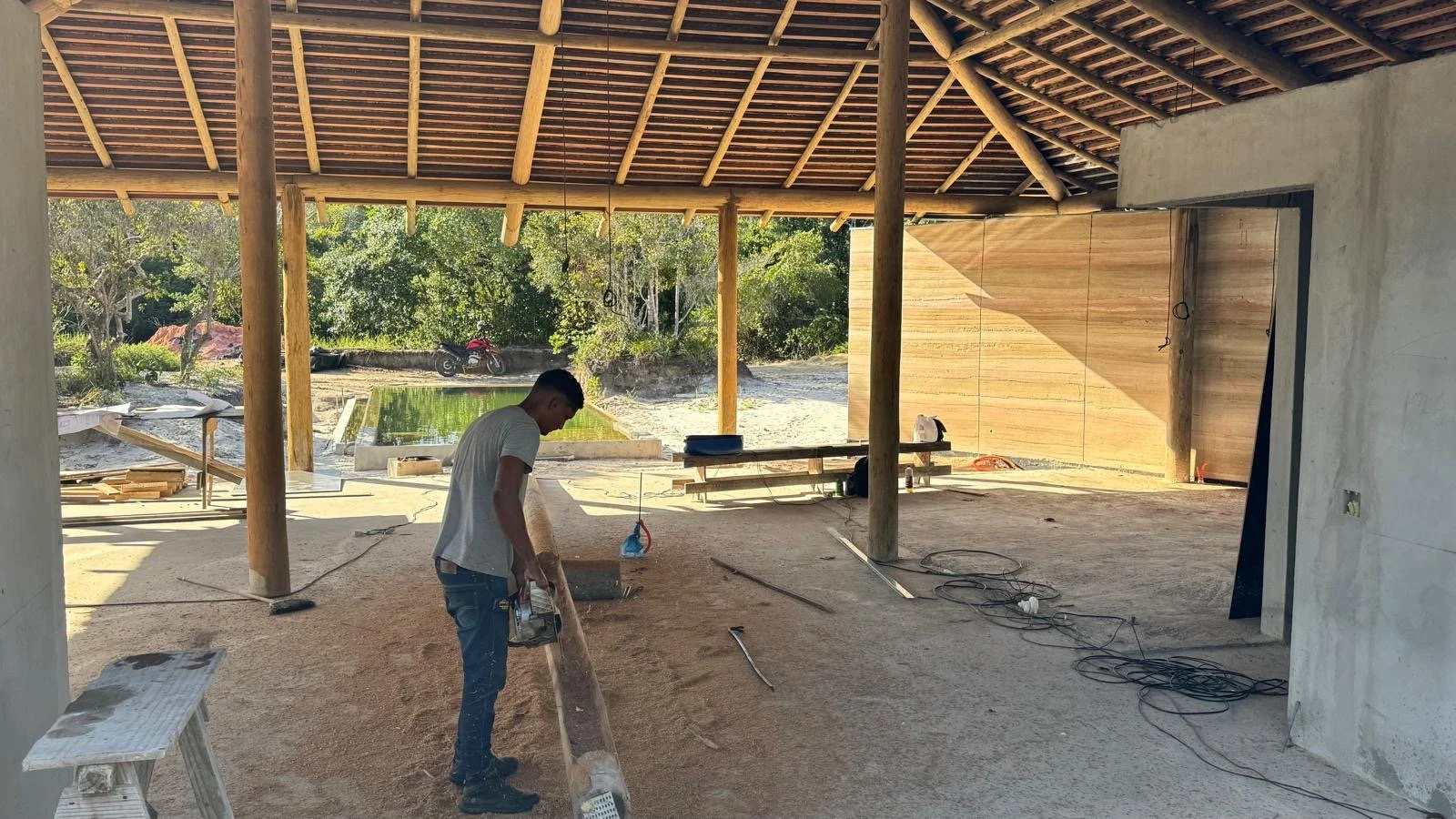 Open-plan living spaces connect to a central veranda and pool, where interior and exterior flow effortlessly. The result is a home that embodies Brazilian modernism reimagined through local heritage — serene, grounded, and timeless.