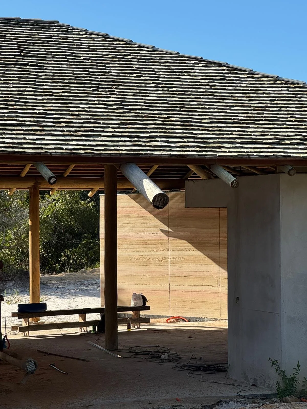 Built using local materials and native construction techniques, the project celebrates regional authenticity — with rammed-earth walls, handcrafted wood details, and natural stone blending into the coastal landscape.